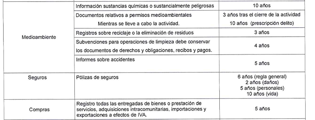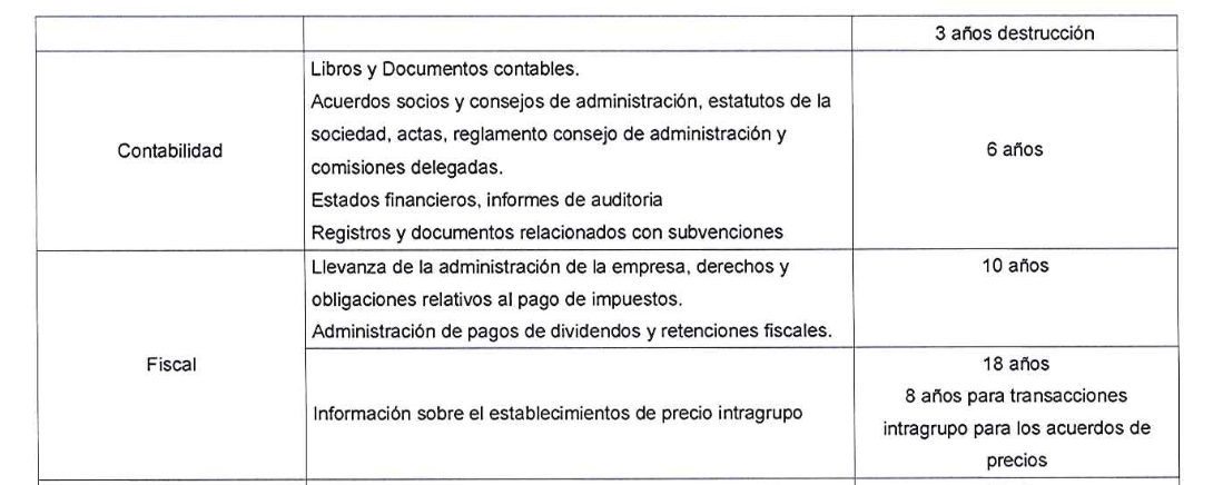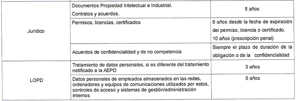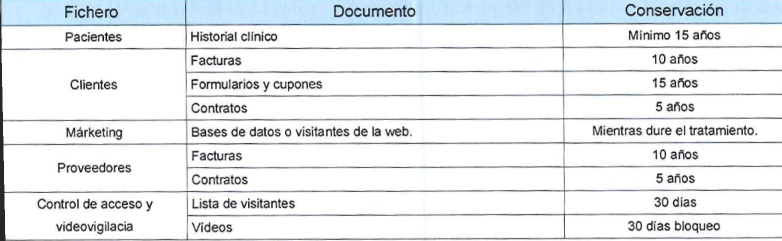 En cada tratamiento o tipología de datos existe un periodo determinado indicado en tabla adjunta